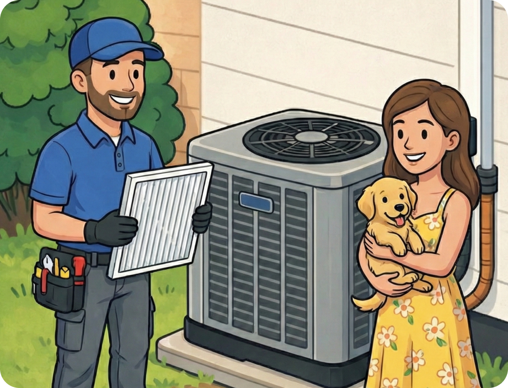 A typical maintenance visit includes inspecting key components, cleaning parts, checking system performance, testing safety controls, tightening electrical connections, and replacing or checking filters if needed. The goal is to keep your system running safely, efficiently, and reliably.